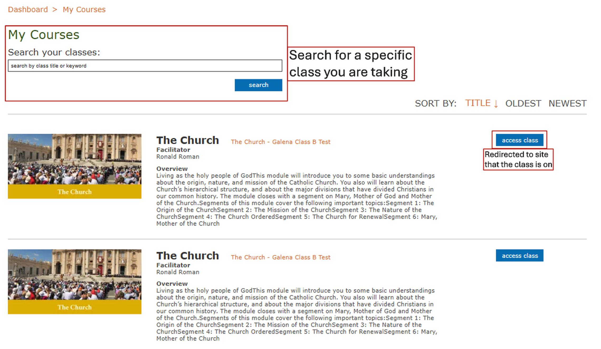 Under My Courses, you can see all the classes in which you are a Learner/Student. To access the class simply click the blue “access class” button. This will redirect you to your class site.