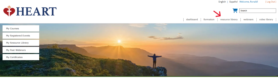 1) Click on “Resource Library” located under the search bar. Here you can find resource Documents to add to your My Resource Library.
