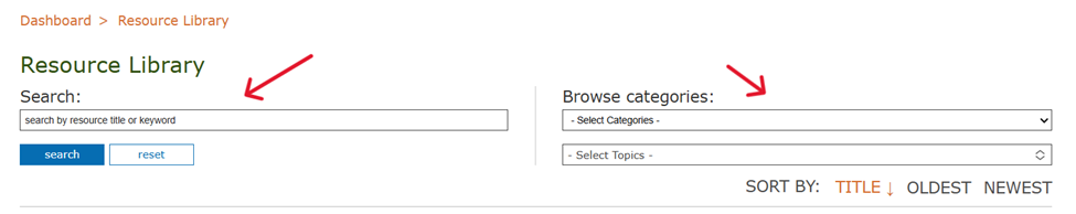2B) You can use the search bar and/or the Categories section to find the resources that you would like to use. The Categories search option has both categories and topics that you can use to narrow down your search for resources.