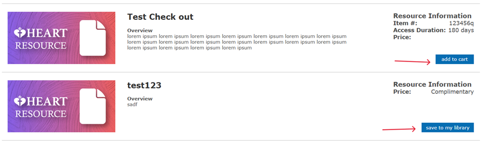 3)To add the resource to your My Resource Library simply click “save to my library” or “add to cart” to purchase it. Once either option is completed it should then give a green box with a check mark stating, “saved to my library”.