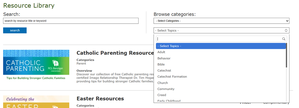2B) You can use the search bar and/or the Categories section to find the resources that you would like to use. The Categories search option has both categories and topics that you can use to narrow down your search for resources.