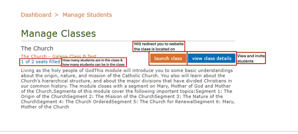 Here you can view all the classes that you are the Facilitator(Teacher) for.
