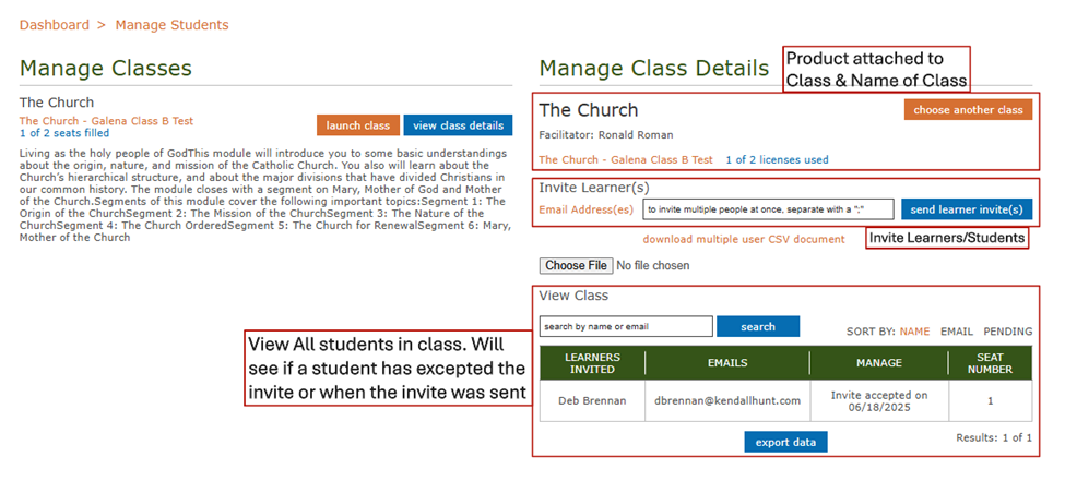 Here you can see and invite students who are taking the class