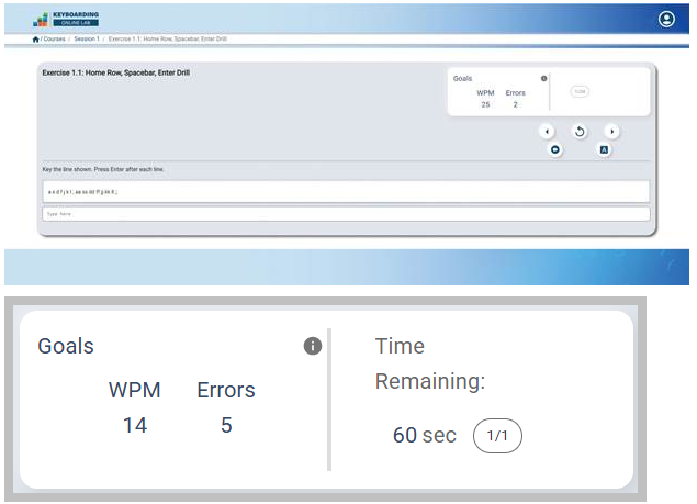 - Click the Submit button to upload Doc034.01 for checking. After you submit your document, your WPM rate and will display at the lower-right corner of the Online Lab screen.